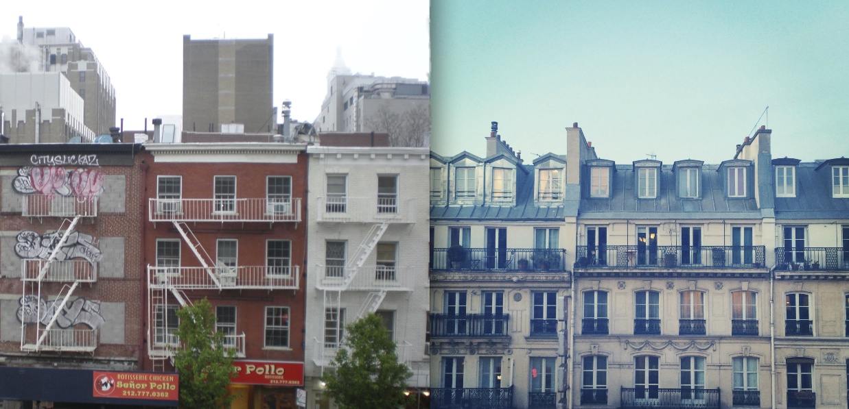 Et là, on retrouve ce qui fait la spécificité de ces deux villes chéries dans l’inconscient collectif : d’un côté, les toits gris des immeubles haussmanniens aux pierres claires, dont le romantisme se révèle sous la pluie et les reflets éblouissent au soleil, et de l’autre, la skyline en évolution perpétuelle, qui témoigne du dynamisme et des vibrations permanentes des five boroughs.