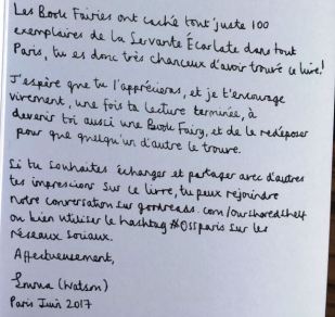 La chasse au trésor parisienne se poursuit aujourd’hui, et des indices sont égrenés au fur et à mesure sur les réseaux sociaux des Book Fairies… Alors rendez-vous sur leurs comptes Twitter (ici pour le compte monde, et là pour le compte français) et Instagram (ici et là).